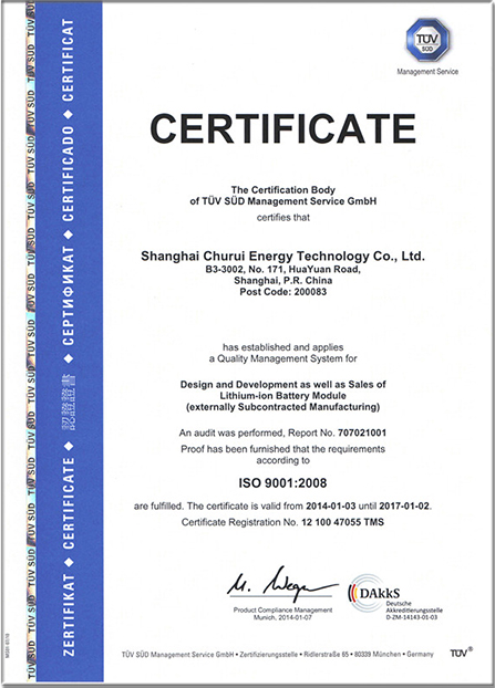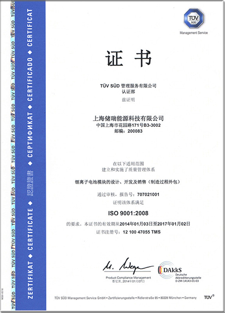 于未来不断进取。公司于2014年1月初已获得ISO9001: 2008 质量管理体系的审核认证,主打储能